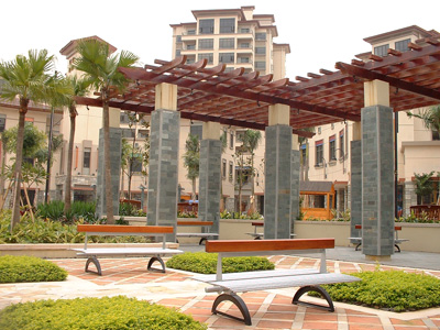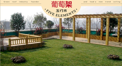 华夏杰将五行木运用到别墅庭院的葡萄架景观,改进了传统的防腐木、不锈钢材料,免去定期的维护,是庭院精装的经典之作。